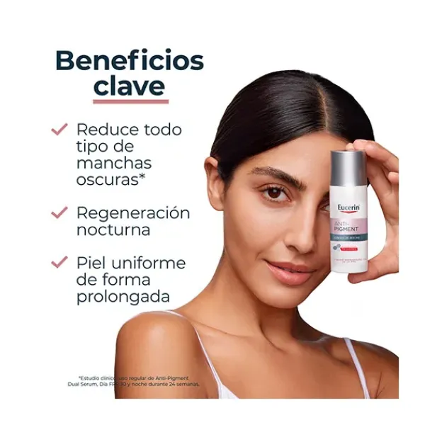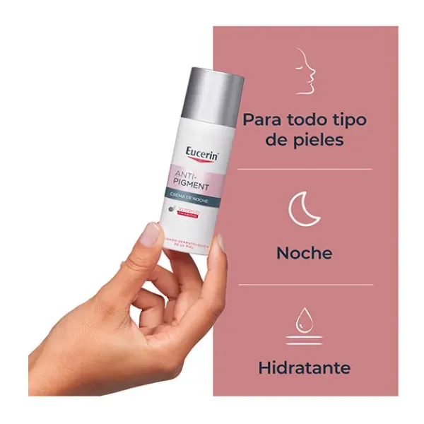 La exposición a la luz del sol, los cambios hormonales y el envejecimiento pueden provocar hiperpigmentación. Para poner solución, Eucerin ha desarrollado Anti-Pigment Noche, una crema antimanchas de cuidado facial que: