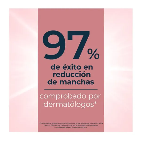 Este principio activo actúa en el origen de la hiperpigmentación inhibiendo la producción de melanina de la piel para que se atenúen las manchas oscuras existentes y para evitar la formación de manchas de hiperpigmentación nuevas. Por otro lado, el pantenol, que se convierte en ácido pantoténico en la piel, mejora la regeneración y la reparación cutáneas.