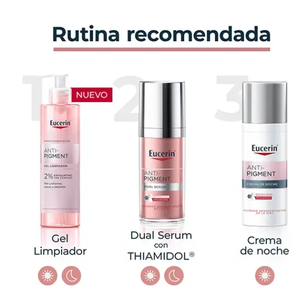 Esta crema facial anti pigmentación contiene thiamidol, un principio activo altamente eficaz patentado por Eucerin que reduce las manchas de hiperpigmentación y evita su reaparición.
