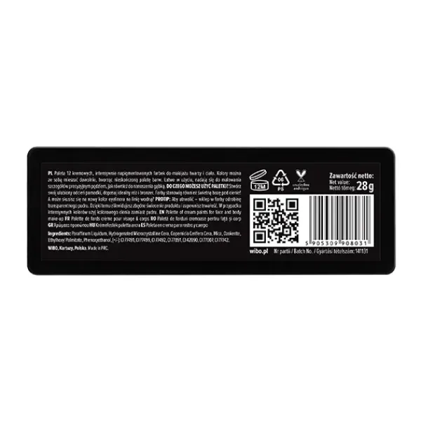 12 pinturas faciales y corporales en crema, intensamente pigmentadas. Los colores pueden combinarse y mezclarse libremente, creando una paleta de colores infinita.