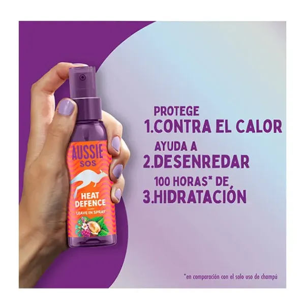 El spray SOS Heat Saviour de Aussie es un spray de protección frente al calor diseñado para reparar el pelo seco y dañado por los peinados.