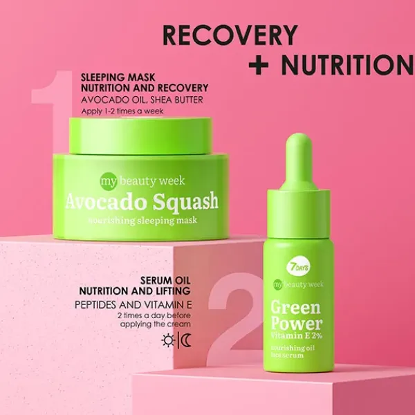 Transformación Instantánea: Mascarilla Nutritiva 7DAYS AVOCADO SQUASH para una transformación nocturna de la piel.