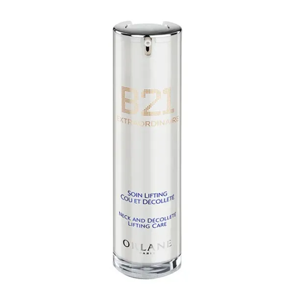 B21 Extraordinarie Cuidado de Cuello y Escote es un tratamiento anti-edad que alisa, reafirma y tonifica la piel del cuello y el escote.