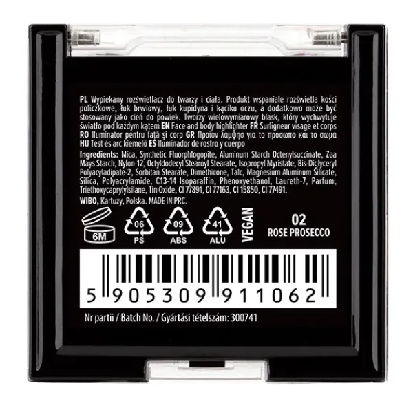 Perfecto para resaltar los pómulos, los arcos de las cejas y las esquinas internas de los ojos; también puede usarse como sombra de ojos.