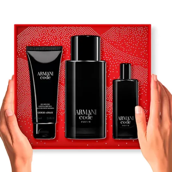 • Armani Code Le Parfum 75 ml y tamaño viaje 15 ml: una reinterpretación de la icónica fragancia Armani Code, mucho más intensa pero manteniendo su distintivo olfativo. La fragancia posee mucho movimiento gracias a sus vibrantes notas cítricas de salida con toques de Vert de Bergamote y Corazón de Bergamota, ambos de la región de Calabria. Para realzar el efecto, la fragancia cuenta con un corazón de Salvia, obtenida de la Provenza. El sofisticado corazón de la fragancia se enciende con la fusión de las notas de Iris de Marruecos, que aportan una renovada sensibilidad. E inspirándose en la herencia de la fragancia original, las notas de fondo se caracterizan por el poderoso Absoluto de Haba Tonka de Brasil junto al corazón de madera de cedro de Virginia, Estados Unidos.