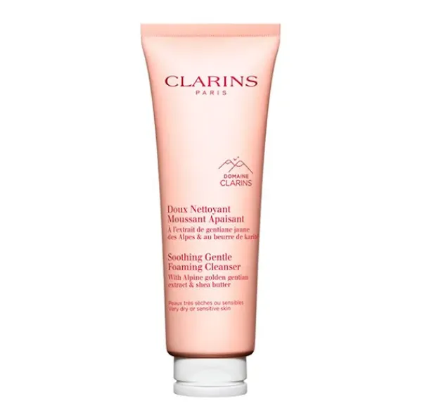 Esta espuma limpiadora, enriquecida con extractos de hierbas alpinas procedentes de la Hacienda Clarins, desmaquilla, calma las pieles secas y elimina las impurezas mientras preserva el equilibrio cutáneo. Enriquecida con activos seleccionados específicamente para equilibrar las pieles muy secas o sensibles: la manteca de karité bio hidrata la piel y el extracto de camomila bio reduce la sensación de tirantez. Su fórmula está enriquecida con el [Gentle Complex] de Clarins, que contiene extractos de genciana amarilla bio y de melisa bio que calman y suavizan la piel. Por último, el extracto de semilla de moringa limita la adherencia de impurezas sobre la piel. Textura cremosa reconfortante que se transforma en una suave espuma fina. Para reducir su huella medioambiental, Clarins ha rediseñado este producto con un tubo más ecológico gracias a su cápsula más ligera.