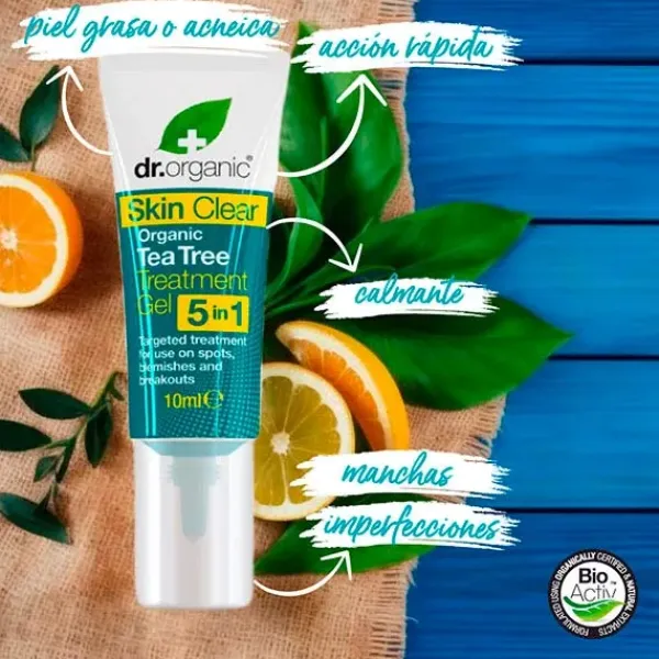 Tratameinto en gel 5 en 1 formulado para tratar manchas e imperfecciones.