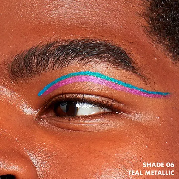 Este Eyeliner líquido de larga duración y resistente al agua, deja un acabado metálico increíble.