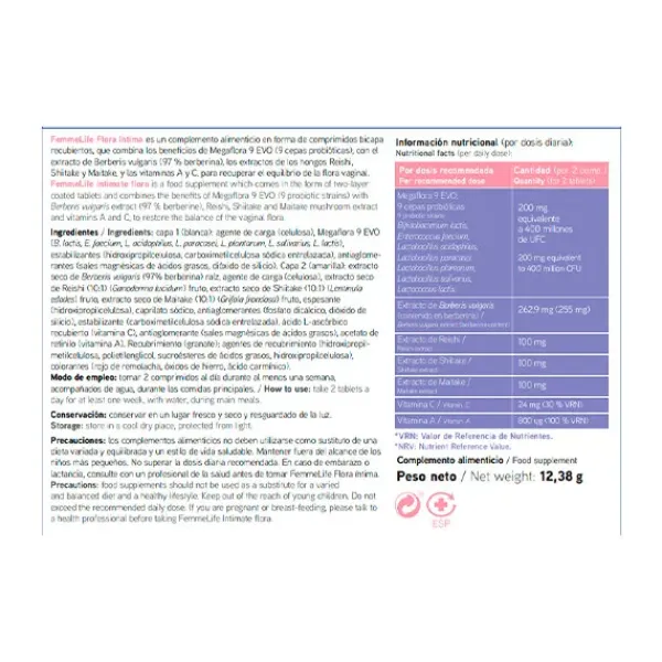 Complemento alimenticio destinado a recuperar el equilibrio de la flora vaginal.