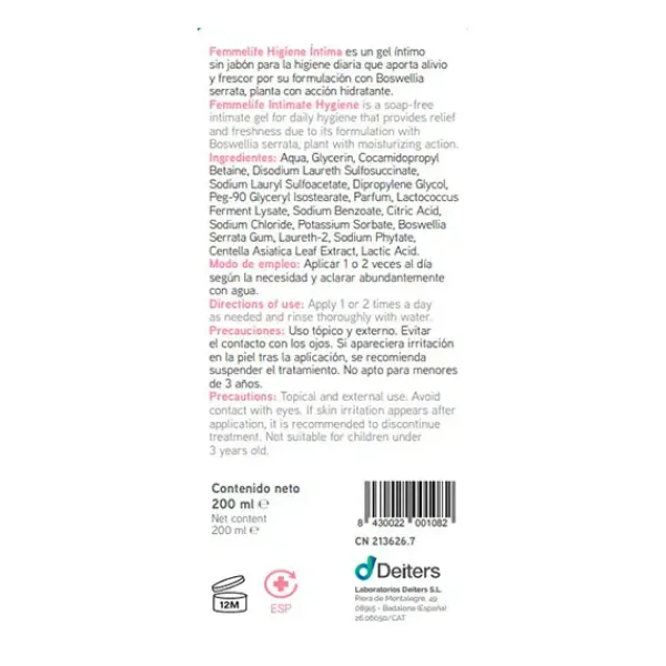 Gel íntimo para la higiene diaria que aporta alivio, hidratación y frescor, para lograr mantener el pH fisiológico vulvar y favorecer la zona vaginal.