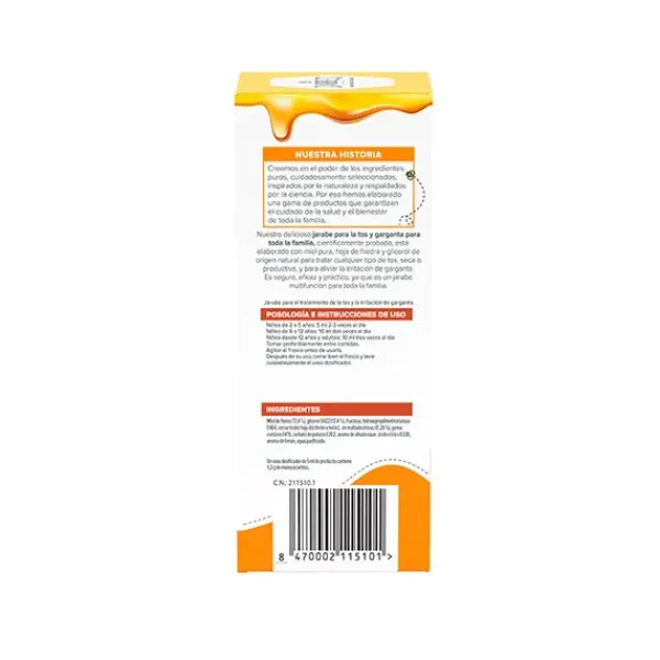 -JARABE CON MIEL: Este jarabe para la tos para adultos y niños a partir de 2 años contiene miel, por lo que alivia y calma las ganas de toser.