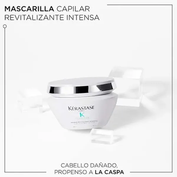 Masque Revitalisant Essentiel es una mascarilla revitalizante intensa para cabellos dañados con tendencia a la caspa.