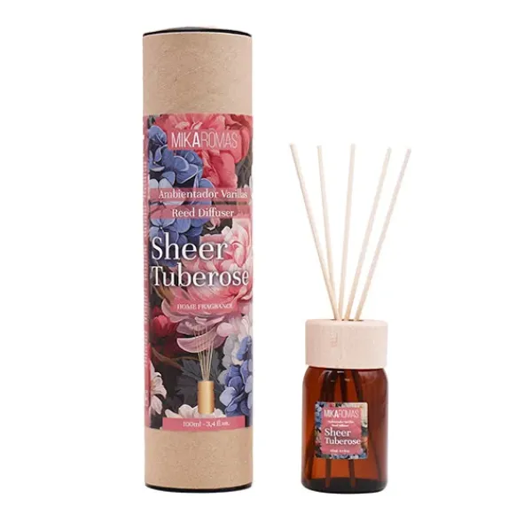 Con su botella ámbar y su embellecedor de madera, esta colección de Mikados es una manera elegante de disfrutar de tus fragancias favoritas en cualquier lugar de tu hogar. Además, los sticks de ratán van incluidos en un elegante y práctico estuche