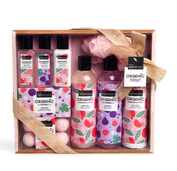 Disfruta de una experiencia completa de cuidado personal con el Set de Regalo Organic de 9 piezas de IDC Institute. Descubre las fragancias encantadoras de higo y granada mientras te sumerges en esta lujosa colección.