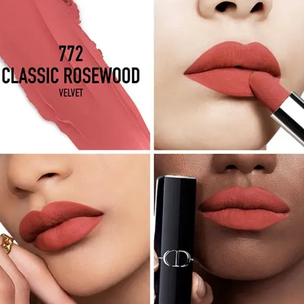 La icónica barra de labios recargable Rouge Dior forma parte de las iniciativas de la Maison para una belleza sostenible. Una vez terminada la barra, utilice Rouge Dior La Recarga para renovar su barra de labios siempre que lo desee. La fórmula clean* de Rouge Dior está enriquecida con tratamiento floral hidratante para 24 horas** de confort y 12 horas*** de fidelidad del color. Barra de labios recargable en 25 tonos, entre ellos, el rojo icónico 999, el rosa palo 720 Icone, el beige contemporáneo 100 Nude Look o el rojo anaranjado 777 Fahrenheit.