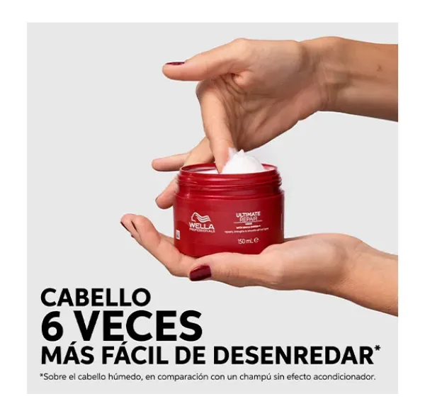 Consigue un cabello 6 veces más fácil de desenredar con la mascarilla de penetración profunda Ultima Repair de Wella Professionals.