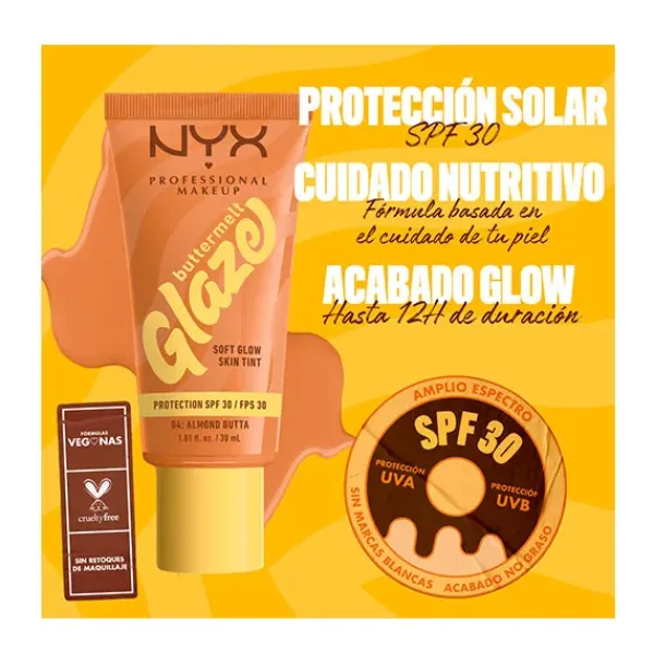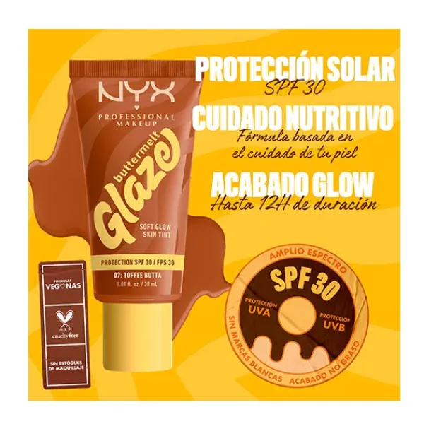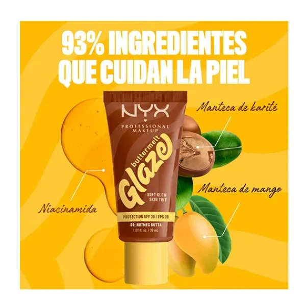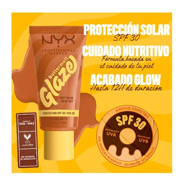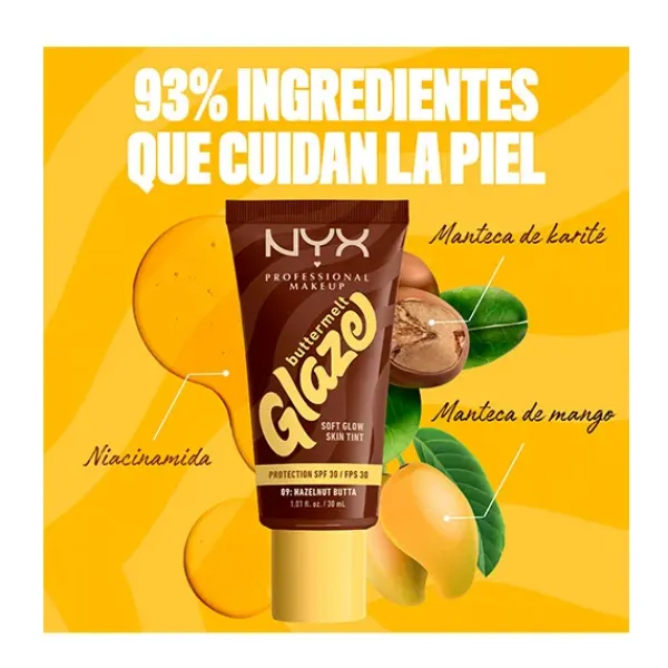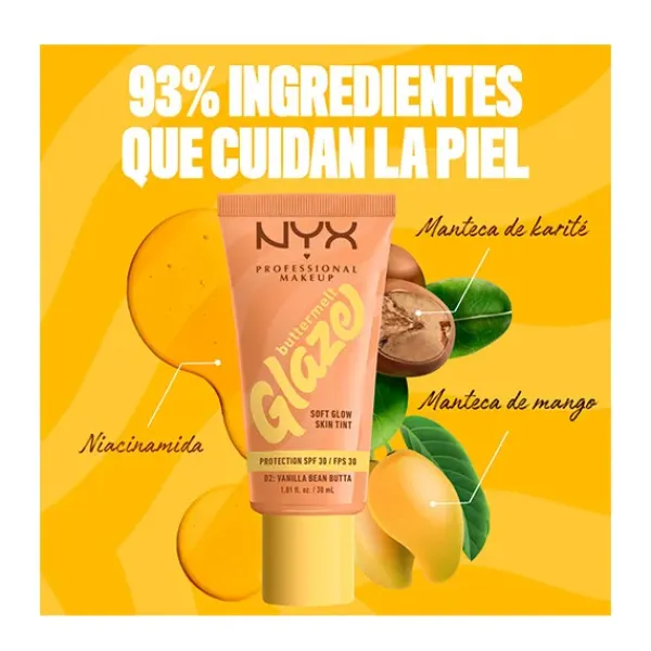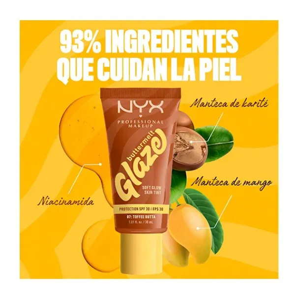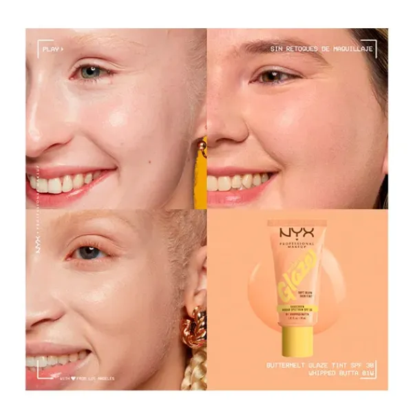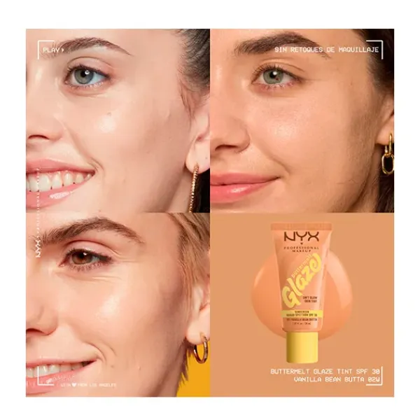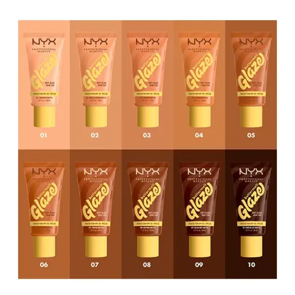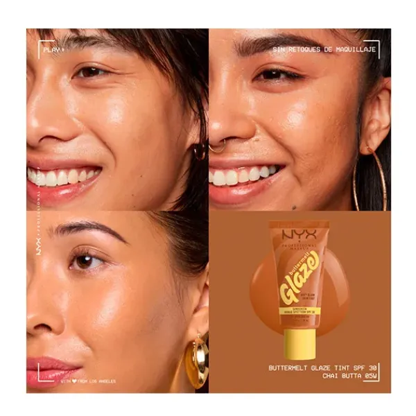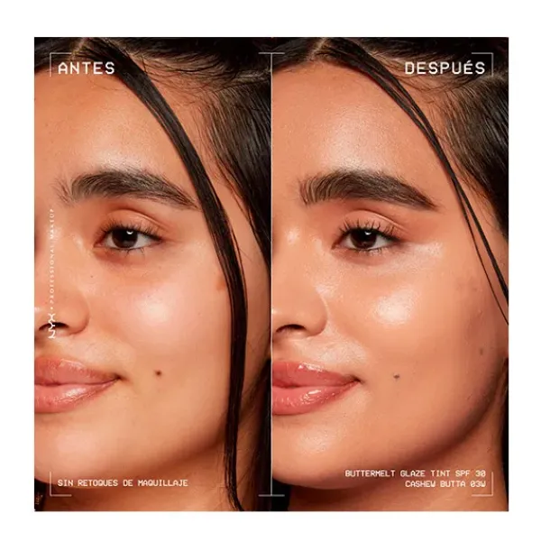 Consigue un glow suave con efecto «glaseado» con el Skin tint Buttermelt Glaze Soft Glow + Protección SPF/FPS 30. Se funde rápidamente para una piel con efecto glaseado. 10 tonos transparentes con protección solar y 93 % de ingredientes de cuidado de la piel. Tiene que ser tuyo.
