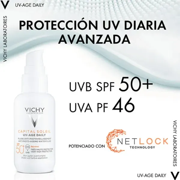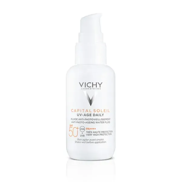 UV-AGE DAILY es un fotoprotector diario de rostro que proporciona muy alta protección frente a los rayos UVB y UVA para prevenir los signos del fotoenvejecimiento como manchas y arrugas.