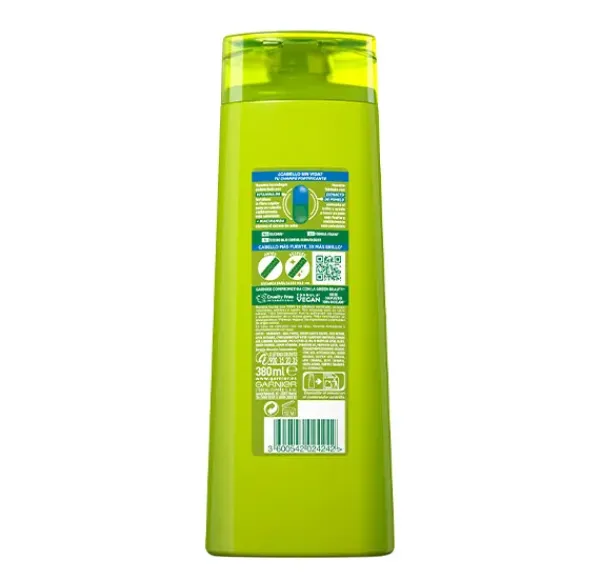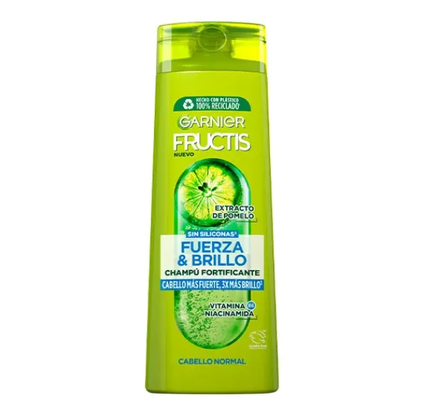 El champú Fructis Fuerza y Brillo es un champú fortificante enriquecido con esencia de pomelo y vitaminas B3 y B6 para limpiar, fortificar y tonificar la fibra del cabello desde la raíz.