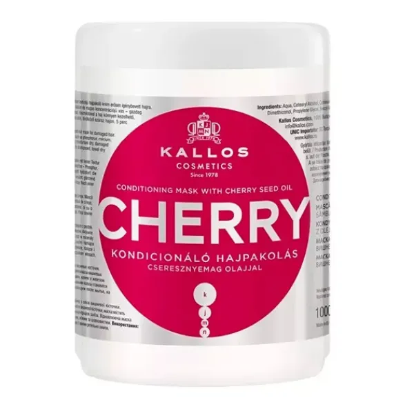 Mascarilla acondicionadora con aceite de semilla de Cereza. Una mascarilla capilar de textura fina con el delicado aroma de Cereza. Enriquecida con aceite de semilla de cereza que contiene vitamina A, B1, B2, B6, C y minerales como fósforo, calcio, potasio y una alta concentración de hierro, esta mascarilla renovadora intensa hidrata instantáneamente el cabello seco y dañado, dejándolo fácil de manejar y nutrido. , brillante y aterciopelado.