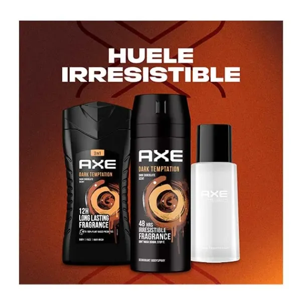 Axe Dark Temptation hace a los hombres héroes. Su combinación de notas frutales de mandarina y membrillo con aromas frescos y masculinos, como el sándalo, la salvia y el ámbar líquido, le da el aura de un héroe legendario.