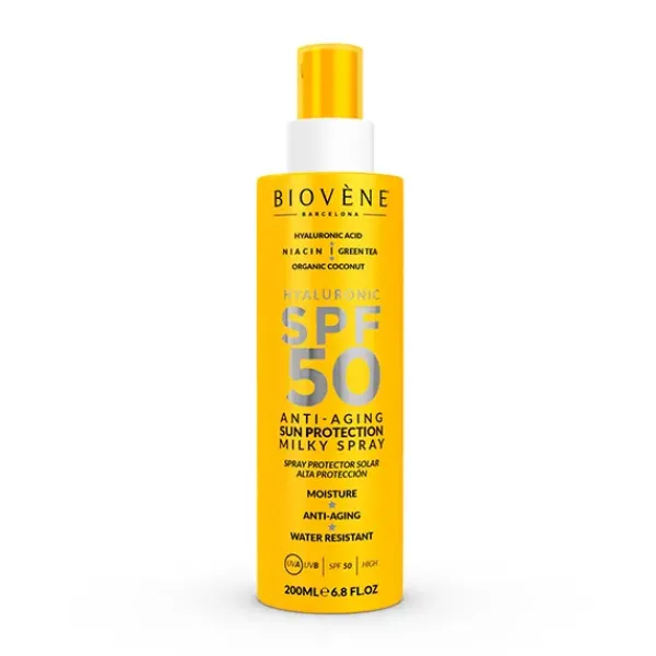 Prepárate para disfrutar de un cálido día de verano con este spray ultraligero de protección solar elaborado con Ácido Hialurónico antiedad y ultrahidratante, Niacinamida y Coco Orgánico.