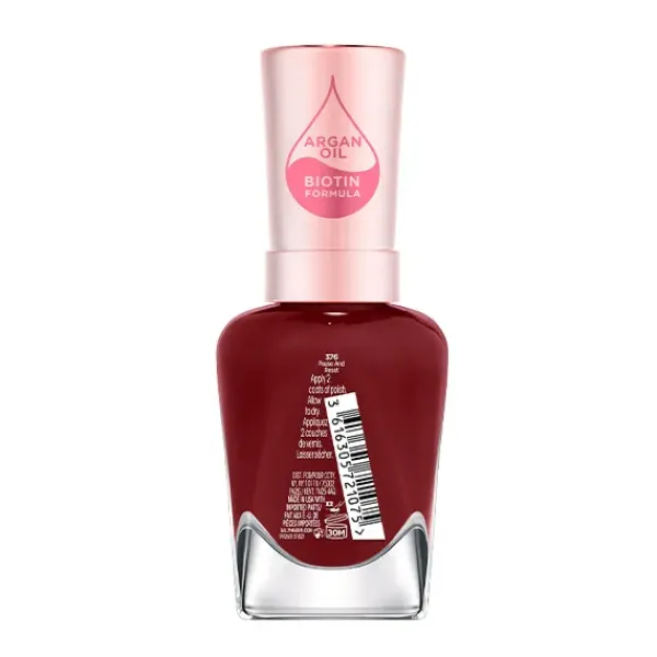 Con una infusión de biotina y aceite de argán, la colección Color Therapy de Sally Hansen fortalece y nutre las uñas, reduciendo su fragilidad y potenciando su resistencia para conseguir unas uñas más sanas y bonitas en tan sólo 7 días – Proporciona un acabado suave y brillante que realza el aspecto de tus uñas, Consigue una manicura de aspecto profesional en casa con estos esmaltes de uñas Sally Hansen fáciles de aplicar – Con nuevos y bonitos tonos para elegir, esta colección de esmaltes de uñas ofrece algo para cada estilo y ocasión – Elimina fácilmente el esmalte utilizando un quitaesmalte estándar, permitiéndote cambiar de look rápidamente y sin dañar tus uñas