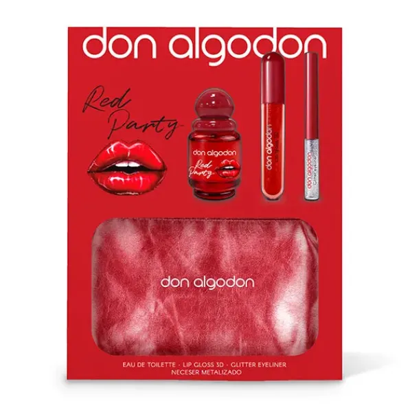 Deslumbra con el Set de Regalo Red Party de Don Algodón. Incluye la fragancia Red Party 30 ml, un 3D Lipgloss rojo, un eyeliner glitter y un neceser metalizado. Un set atrevido para mujeres sensuales y apasionadas.