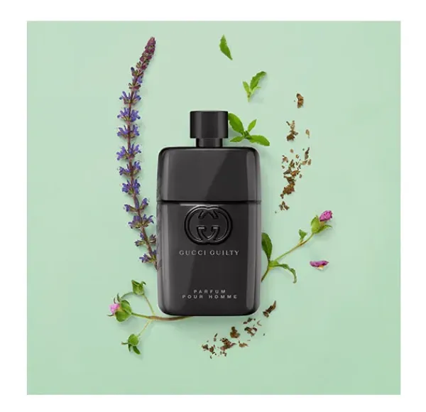 GUCCI Guilty Pour Homme Parfum una nueva fragancia donde se realza el aroma intenso con el cuál se alejada de las reglas y convenciones de la sociedad. Es una fragancia de la familia ámbar amaderada en el cuál reeinterpreta la esencia del perfume clásico de Gucci Guilty Pour Homme. Su frasco se presenta en un envase totalmente metalizado, que se realza con un acabado en antracita oscuro y un tapón del mismo color.