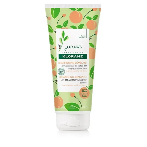 Con un ligero perfume de melocotón, el champú desenredante suave formulado por los laboratorios de Klorane limpia con suavidad el cuero cabelludo y el cabello de los niños a partir de 3 años.