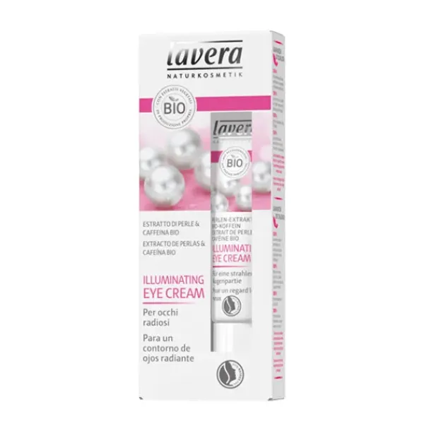Oculta instantáneamente las ojeras, las líneas de expresión y el cansancio: la crema iluminadora para ojos Lavera de color perlado con extracto de perla y pigmentos que reflejan la luz cubre las ojeras e ilumina la piel de aspecto cansado alrededor de los ojos.