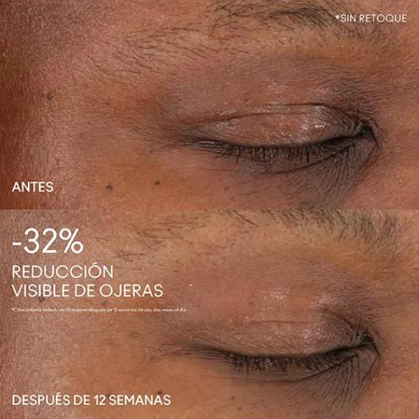 Revitaliza, refresca e ilumina tu mirada con nuestro contorno de ojos que proporciona una reducción visible de tus ojeras en un -32% en solo 12 semanas.
