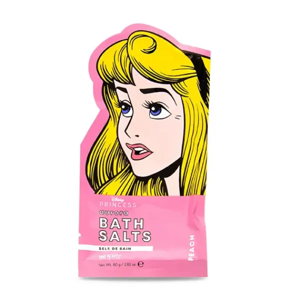 Sales de baño con la ilustración de la princesa Aurora, la Bella Durmiente. Dulce fagancia a melocotón para aromatizar tus baños más relajantes.