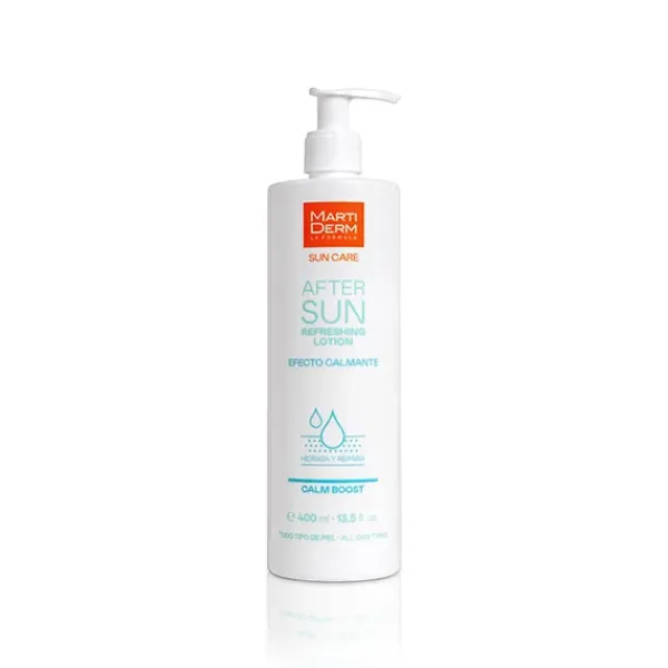 MARTIDERM Sun Care After-Sun Lotion Es una loción ligera y fresca de rápida absorción que aporta un efecto calmante, reparando y recuperando la piel expuesta al sol de manera inmediata.