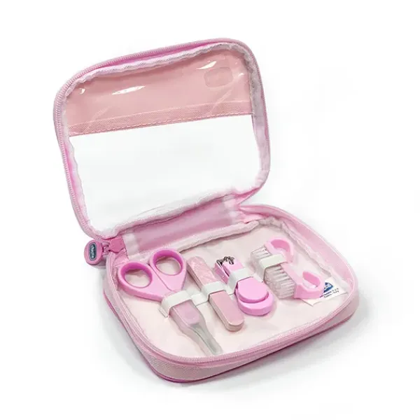 Práctico neceser que recoge todo lo necesario para el cuidado de las manos de uñas del bebé.