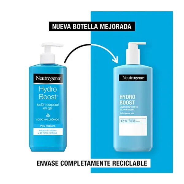 Clínicamente probada, la fórmula refrescante y ultraligera de Hydro Boost Loción Corporal en Gel de Neutrogena está enriquecida con ácido hialurónico.
