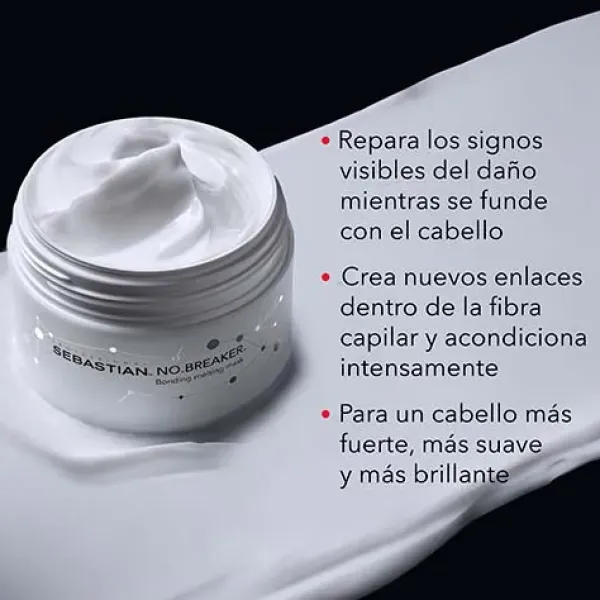 Para obtener los mejores resultados, úsalo como parte del sistema de reparación capilar NO.BREAKER de Sebastian Professional, una serie de tratamientos para el cabello seco y dañado diseñados para nutrir profundamente el cabello, dejándolo hasta 20 veces más fuerte*. Prueba esta, Mascarilla para el Pelo Seco y Dañado junto con el Pre-Champú y el Champú Reparador NO.BREAKER, el Espray de Tratamiento y el Acondicionador Sin Aclarado.