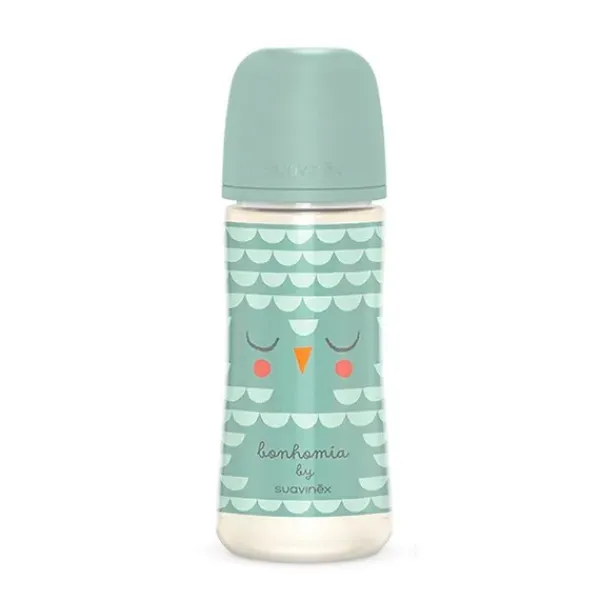 Biberón de 360 ml de Bonhomia, la nueva colección Premium de Suavinex. Biberón con Tetina Fisiológica SX Pro de Silicona, de Flujo Denso, +6 Meses.