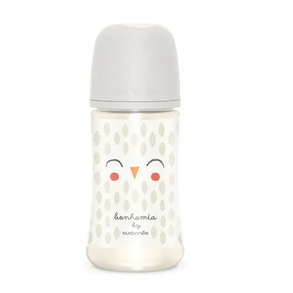 Biberón de 270 ml de Bonhomía, la nueva colección Premium de Suavinex. Biberón con Tetina Fisiológica SX Pro de Silicona, de Flujo Medio, +3 Meses.