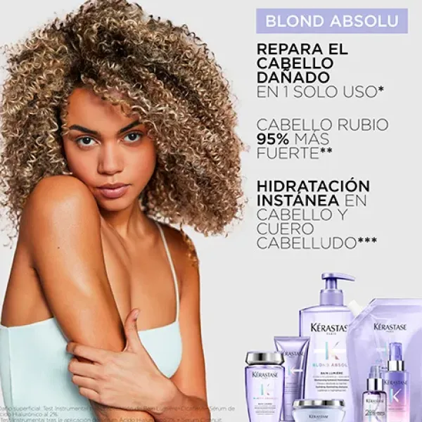 • Bain Blond Lumière, 250 ml Un champú hidratante para todo tipo de rubio. El cabello queda 8 veces más brillante y 16 veces más fuerte