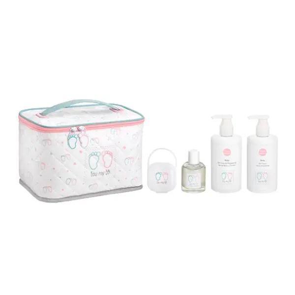 «Mi Primer Neceser» de Eau my BB contiene todo lo que necesitan los recién nacidos, una fragancia sin alcohol en formato 60 ml con un aroma delicado y fresco, vegano con más de 90% de ingredientes de origen natural. Además, incluye gel de baño y champú 300 ml, loción hidratante 300 ml y porta chupetes. Toda la gama de Eau my BB es solidaria con la infancia más necesitada junto a la Fundación Nuria García.