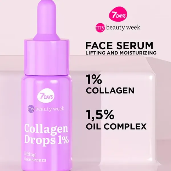 El suero facial antienvejecimiento no inyectable COLLAGEN DROPS tiene un poderoso efecto lifting, suaviza las arrugas, regenera la piel y la hace más firme. MY BEAUTY WEEK SMART care es una combinación de ingredientes inteligentes y fórmulas innovadoras que brindan un 100% de efectividad.