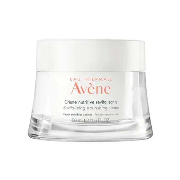 La Crema nutritiva revitalizante nutre, calma y protege la piel seca y apagada. La composición de esta crema nutritiva incluye extracto natural de frutos rojos, un «potenciador» de las células cutáneas y una forma estable de vitamina E antioxidante para combatir eficazmente los signos de fatiga, así como Agua termal de Avène, calmante y suavizadora.