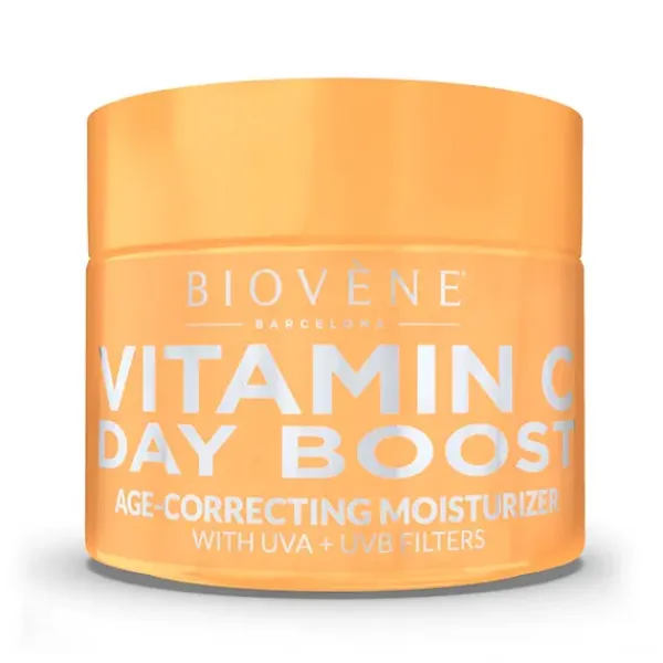 Crema de día hidratante DAY BOOST correctora de edad hecha con vitamina C y mango orgánico que hidrata inmediatamente la piel para iluminar la falta de brillo y darle la bienvenida a un brillo juvenil.