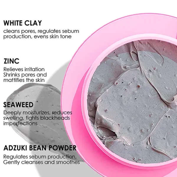 La arcilla blanca absorbe, reduce los poros y unifica el tono y la textura de la piel.