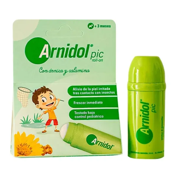 Arnidol Pic combina las flores de Árnica junto con otros 6 ingredientes activos de origen natural como la resina de boswelia y la calamina para un alivio inmediato de la piel de los más pequeños tras contacto con insectos.