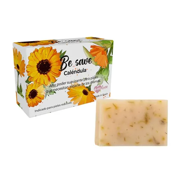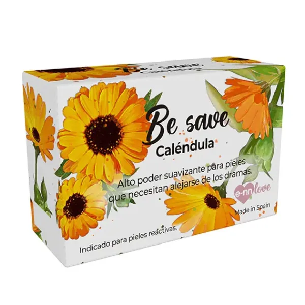 El jabón vegano BE SAVE de Caléndula cuida la piel gracias a su gran poder antiinflamatorio y cicatrizante, por lo que es idónea para tratar pieles castigadas.