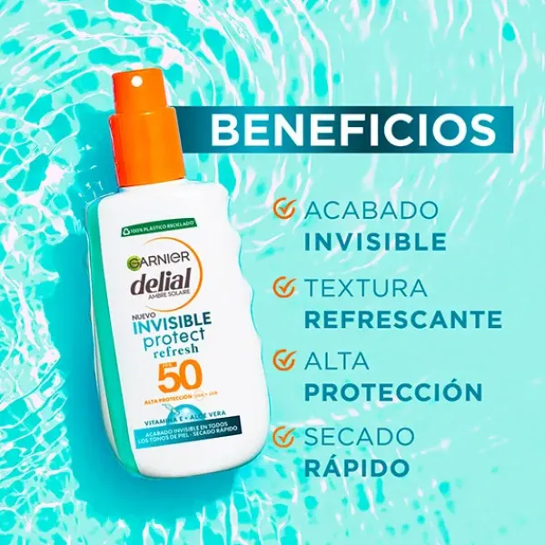 El Spray Protector Solar Clear Protect Transparente SPF 50+ protege tu piel dejando una agradable sensación gracias a su fórmula 100% transparente y 100% no grasa.
