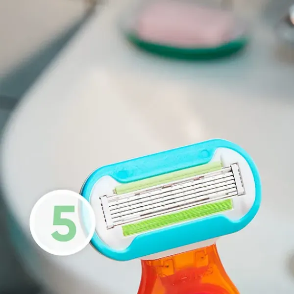 La maquinilla tiene 5 hojas para una depilación superapurada y un mango mini para llevártela donde quieras.