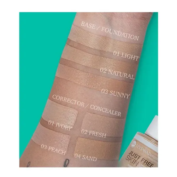 El corrector Just Free Skin contiene glicerina y extracto de hojas de aloe vera por lo que deja la piel hidratada a la vez que calma las pieles irritadas o dañadas.